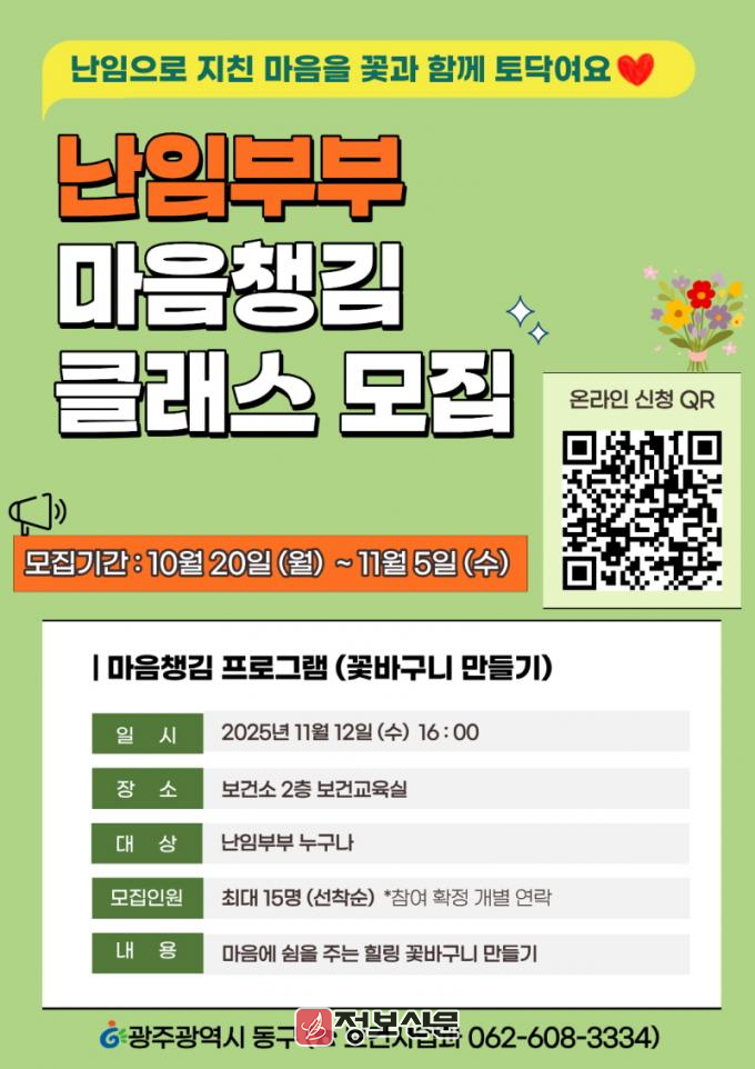 ![]() 광주시 동구, 난임부부 마음챙김 클래스 운영 |