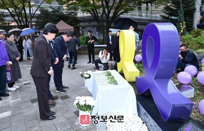 한편, 남구는 지난해 백운광장 푸른길 공원 산책로 인근에 세월호 및 이태원 참사 희생자를 추모하는 노랑 리본 조형물과 보랏빛 리본 조형물을 설치해 추모 공간으로 조성한 바 있다.