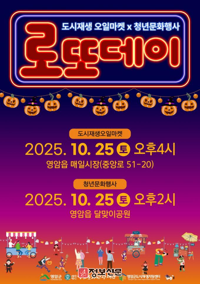 신환종 영암군 도시디자인과장은 “이번 영암 로또데이는 가을밤 프로그램과 가족참여형 플리마켓을 결합해, 영암군민과 관광객이 함께 즐기며 도시재생과 공동체 활동을 체감할 수 있는 자리다. 많은 분들이 행사장을 찾아 즐겨주길 바란다”고 전했다.