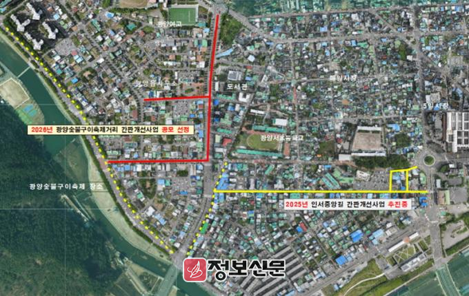 이번에 선정된 사업 대상지는 광양읍 칠성리 서천2길에서 인덕로까지 총연장 860m 구간이다. 건물 51동과 업소 85개소, 광고물 392개가 정비 대상이며 국비 2억 5천만 원과 지방비 2억 5천만 원, 총 5억 원이 투입된다.