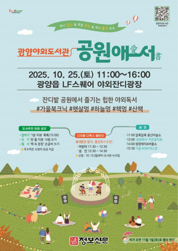 ![]() 광양시, 야외도서관–공원애愛서書 행사 개최 |