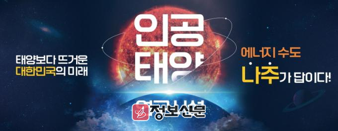 ![]() 나주시가 전남도, 한국에너지공대와 함께 ‘인공태양(핵융합) 연구시설’ 유치에 본격적으로 나선다. 사진은 인공태양 연구시설 유치 홍보 포스터. (사진 제공-나주시) |