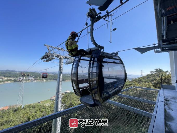 이번 훈련은 케이블카로 많은 가족단위 여행객들이 방문하는 시기에 비상상황 발생 시 현장 대응 능력 강화 및 안전한 케이블카 운영을 위해서 실시하게 되었는데, 케이블카 운행 중 정전이나 천재지변, 기계 이상 등으로 관광객이 탑승한 케빈이 공중에 멈춰 서는 상황을 실제와 동일하게 재현하여 즉각적인 초동조치 및 케이블카 현장직원들의 각 상황 전파와 현장에서의 직접적인 구조와 대피 절차가 민관 협조 체계 아래서 얼마나 빠르게 작동하는지를 중점적으로 점검했다.