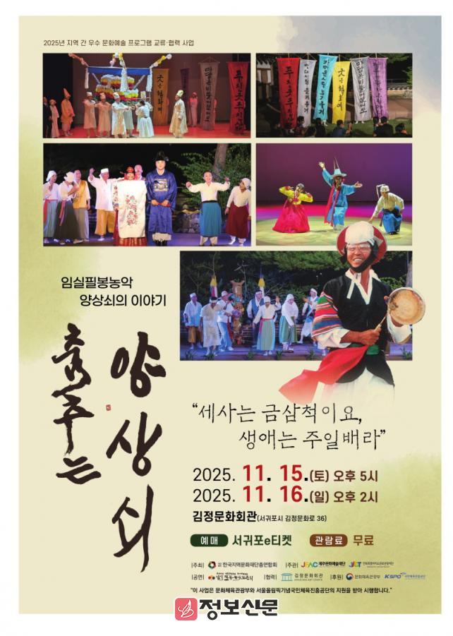 ![]() 제주문화예술재단, 임실필봉농악 춤추는 양상쇠-세사는 금삼척이요 생애는 주일배라 공연 개최 |