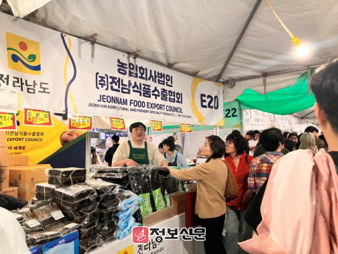 이번 축제에선 전남 대표 수출품목인 김을 비롯해 김치, 된장·고추장 등 전통장류, 표고, 녹차, 한과, 식혜, 건어물·젓갈·전복 등 수산물까지 다양한 품목을 판매했으며, 대부분의 제품이 현지 소비자로부터 큰 인기를 얻었다.