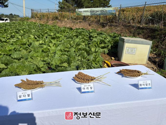 ![]() ▲ 여수시(시장 정기명)는 지난 20일 화양면 감도마을에서 지역주민과 시범사업 대상자, 관계자 등 50여 명이 참석한 가운데 ‘잡곡 조 신품종 아리찰 생산단지 조성 결과평가회’를 개최했다. |