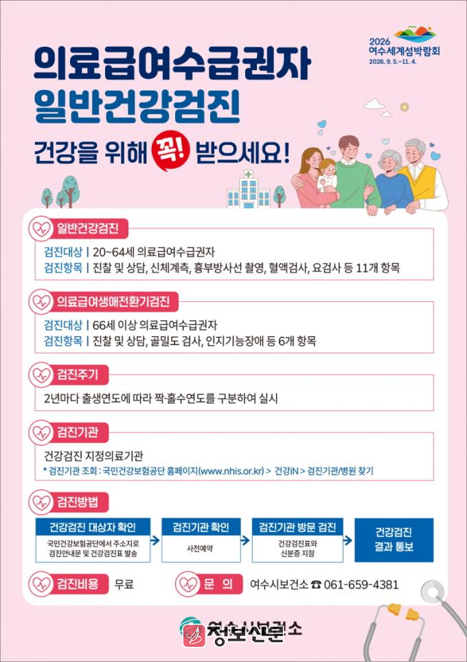 ![]() 여수시, 의료급여수급권자 무료 건강검진 수검 독려 |