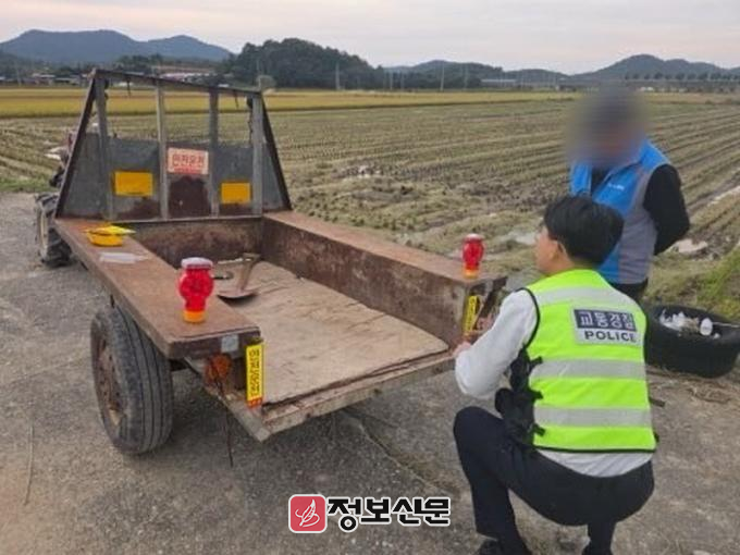 또한, 위험한 농기계 발굴은 실시간으로 112 신고 모니터링과 함께 순찰 중 등화장치가 없거나 파손된 위험 농기계 발견 시 즉시 해당 농기계 소유주를 찾아가 경광등 부착 및 형광조끼 등 안전용품을 지급해주고 있다.
