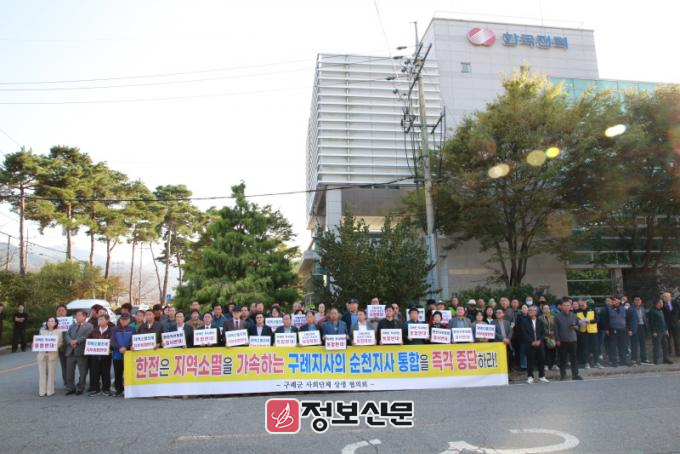 김영민 사회단체상생협의회 위원장은 ‘기존에 구례군에 있던 여러 기관들이 조직 효율화와 서비스 개선 등을 약속하며 통합한 사례가 있지만 결국에는 군민들의 불편만 초래하였다.’며 ‘공공기관을 유치하여 지역소멸을 막고자 온 군민이 노력하고 있는 현 상황에서 한국전력공사의 지사 통합정책은 전력 수요자의 요구를 외면하고, 재정 악화를 초래한 운영상의 과실을 소도시 지역민에게 전가하는 행태’라며 지역 내 160개 사회단체가 연대하여 문제에 대응해 나갈 것을 당부했다.