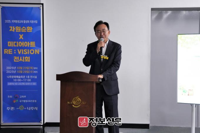 나주시(시장 윤병태)는 교육부 공모사업인 ‘2025 지역평생교육활성화 지원사업’의 성과 전시인 ‘미디어아트×분리배출 RE:VISION’ 전시회를 오는 29일까지 나주문화예술회관 1층 전시실에서 개최한다고 24일 밝혔다.