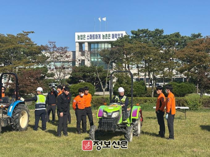 교육에서는 주요 농기계를 중심으로 △작동 원리 △운전 요령 △비상정지 장치 및 안전센서 작동 등의 이론과 실습이 이뤄졌다. 소방대원들은 각 농기계를 조작·운전하며 비상 상황에 대비한 실습 훈련을 실시했다.