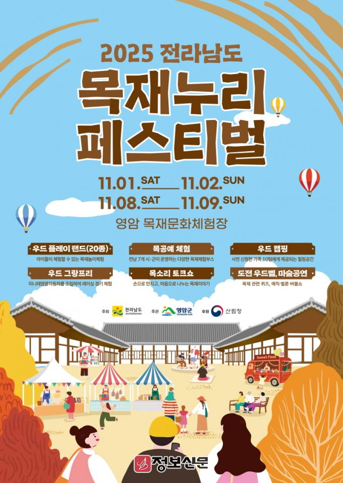 최진석 영암군 산림휴양과장은 “목재누리페스티벌은 목재의 친환경적 가치와 전통문화의 아름다움을 함께 느낄 수 있는 자리다. 아이들과 함께 목재의 소중함을 배우고, 자연과 가까워지는 시간을 보내시길 바란다”고 말했다.