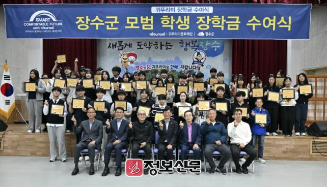 이번 행사는 귀뚜라미그룹과 장수군이 함께 지역의 우수한 학생들을 격려하고 미래 인재로 성장할 수 있도록 지원하기 위해 마련된 자리로, 관내 중·고등학생 50명에게 총 5천만 원의 장학금과 장학증서가 전달됐다.