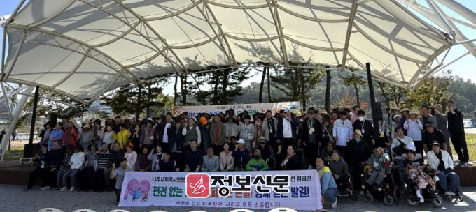 나주시지역사회보장협의체(공동위원장 윤병태, 홍철식)는 지난 24일 빛가람 호수공원에서 ‘한 걸음씩, 함께 만드는 세상’을 주제로 ‘제8회 장애인과 함께 호수공원 걷기 행사’를 개최했다고 27일 밝혔다.