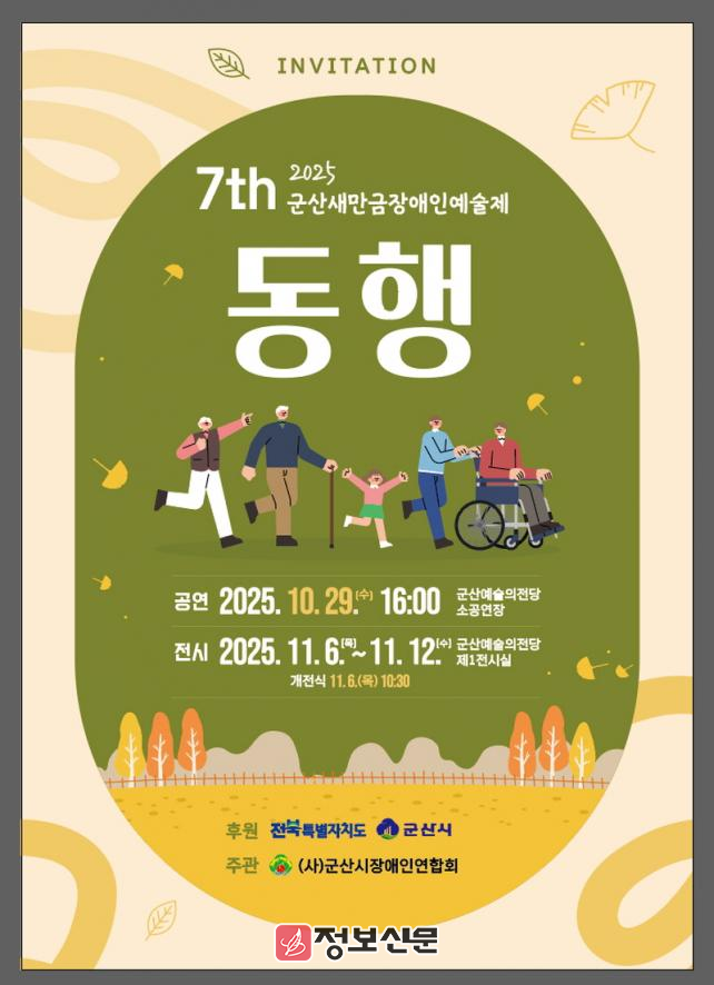 전시에는 군산지역 장애인 작가 약 45명이 참여해 미술·사진·공예 등 다양한 작품을 선보이게 된다. 특히 비장애인 예술인(군산구상작가회)의 초청작품 23점도 함께 전시되어, 장애인과 비장애인이 예술로 이어지는 진정한 ‘동행’의 의미를 보여줄 것으로 기대된다.