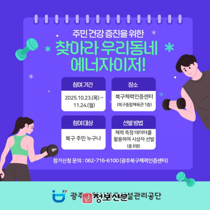 ![]() 광주시 북구 시설관리공단, 북구체력인증센터 「찾아라 우리동네 에너자이저!」 개최 |