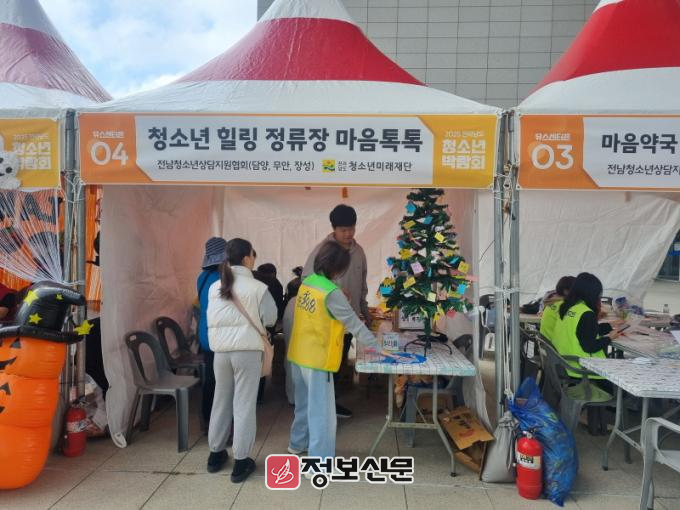 센터는 ‘스트레스 뿌셔!’ 프로그램을 통해 청소년들이 일상 속 스트레스를 시각적으로 해소하고,‘소망나무’에 희망 메시지를 걸며 치유의 시간을 가졌으며, 또한 현장에서는 청소년전화 1388 등 상담·지원 서비스를 안내하며 청소년 상담․지원망을 홍보했다.