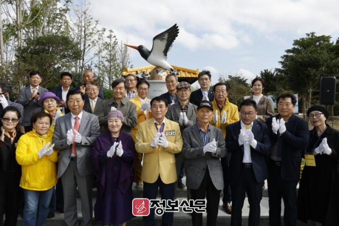 이날 공개된 시비에는 시인의 대표작인 「집으로 가는 길」이 암각되었다. 특히, 시비 상단에는 팔금면 불무기도에 서식하는 멸종위기종 검은머리물떼새 조형물 8기가 설치되어, 시인의 문학 정신과 지역 생태의 상징성을 동시에 담아냈다.