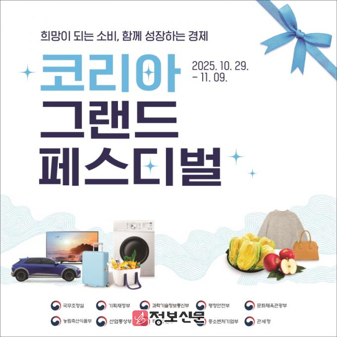 ‘코리아 그랜드 페스티벌’은 올해 처음 열리는 통합형 국가소비축제다. 제조·유통·소상공인 등 3만여 기업이 참여한다. 행사 기간 교통·숙박·관광 등 다양한 분야에서 할인과 프로모션이 진행된다. 국민이 체감할 소비 혜택을 통해 내수 회복과 지역상권 활력을 되살리는 것이 목표다.