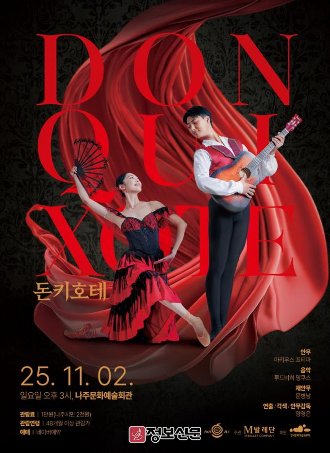 나주시(시장 윤병태)는 한국문화예술위원회가 후원하는 ‘2025 우수 예술단체 유통지원 사업’의 일환으로 M발레단과 함께 클래식 발레 ‘돈키호테’를 공연한다고 29일 밝혔다.