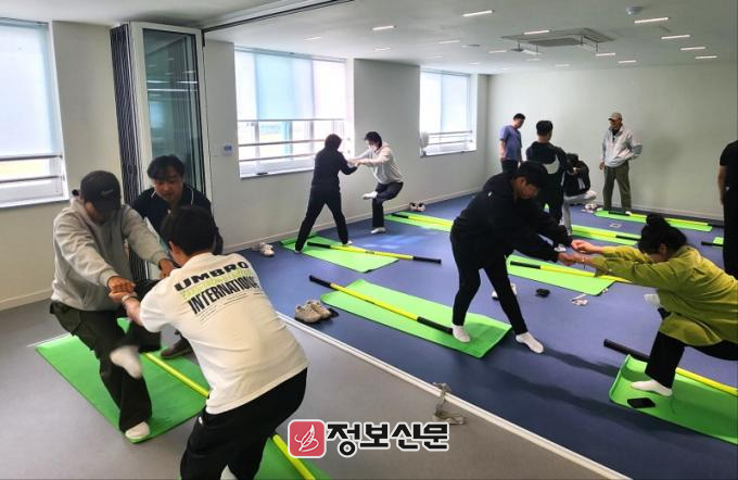 먼저, ‘몸-마음-삶 회복클럽’에서는 이승재 목포대 체육학과 교수를 초빙해 케이비스틱을 활용한 스트레칭 실습을 진행하며, 부상 예방과 균형 잡힌 신체 관리를 위한 구체적 지도 방안을 공유했다. 케이비스틱 스트레칭은 운동 전후의 부상 예방과 신체 균형 개선에 유용한 운동기구로, 이 교수는 효과적 스트레칭 방법을 소개하며, 학생 선수의 건강관리 이론과 생생한 현장 경험들을 나눴다.