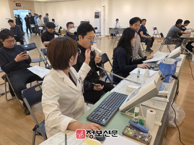 대상자는 관내 현장 업무 근로자로, 접근성 및 편의를 위해 단체 출장 검진으로 진행했다. 향후 검진 결과에 따라 추적검사 등 사후관리를 철저히 실시해 근로자의 직업성질환 예방과 건강 증진을 위해 적극적으로 노력할 예정이다.