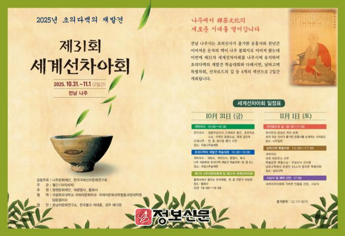 ![]() 나주문화재단, 초의 다맥을 잇다 차 문화 포럼 개최 |