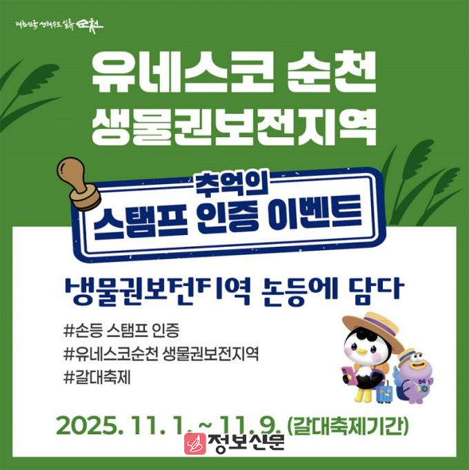 ![]() 순천시, 2025 순천만갈대축제 유네스코 생물권보전지역 스탬프 인증 이벤트 진행 |