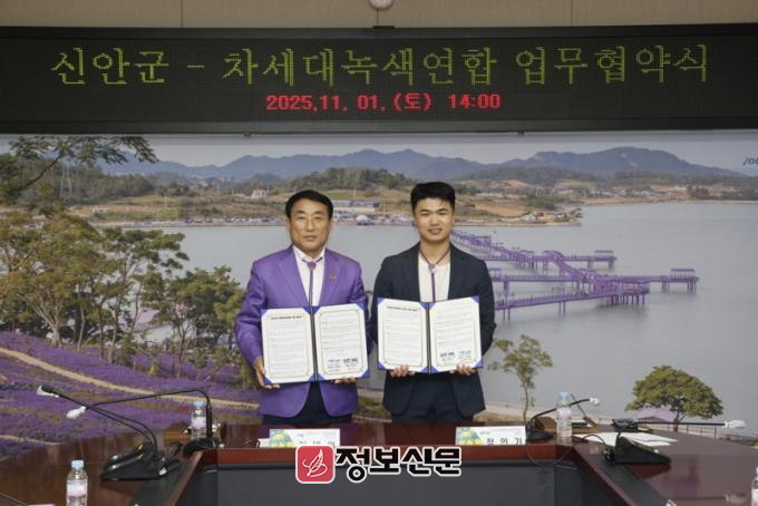 지난 1일, 신안군청 영상회의실에서 신안군(군수 권한대행 김대인 부군수)과 (사)차세대녹색연합(대표 정인기)은 ‘신안 탄소중립 협력을 위한 업무협약’을 체결했다.