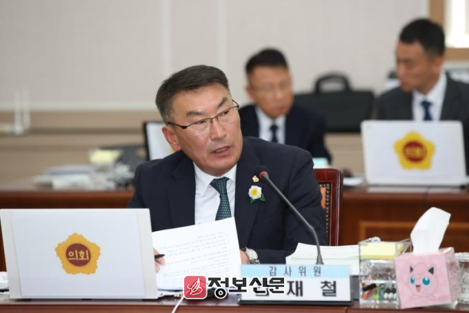 ![]() ◀ 김재철 전남도의원(더불어민주당ㆍ보성1)이 11월 3일, 전남도교육청에서 열린 행정사무감사에서 질의하고 있다.
