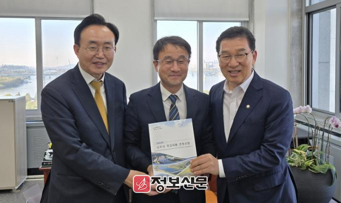 ![]() 윤병태 나주시장은 지역 핵심 현안 사업의 국비 확보를 위해 지난 3일 국회를 방문, 예결위원회와 주요 상임위원회 등을 찾아 적극적인 건의 활동을 펼쳤다. 사진 왼쪽부터 윤병태 나주시장, 한병도 예산결산특별위원장, 신정훈 행정안전위원장. (사진 제공-나주시)