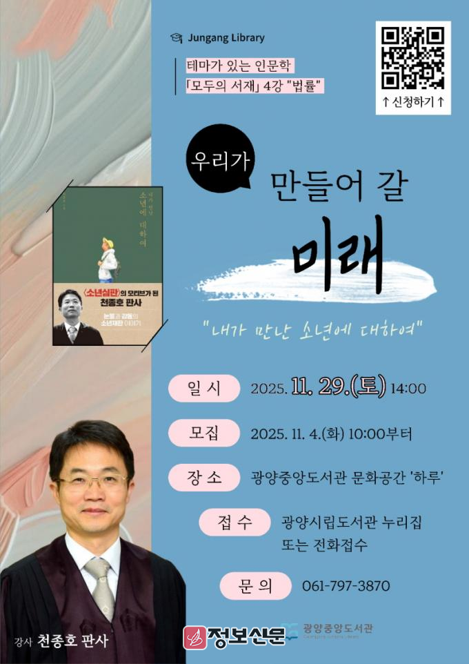 ![]() 광양중앙도서관, 「모두의 서재」 천종호 판사 강연 개최 |