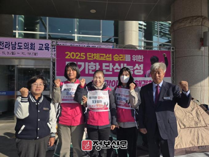 전국학교비정규직노조 전남지부 황호순 지부장은 “단체교섭 타결을 촉구하며 단식 13일차에 돌입했으나, 교육감이 직접 해결의지를 보이지 않고 있다”며 “원한만 해결이 어려울 시 14일 총파업에 나설 수밖에 없다”고 밝혔다.