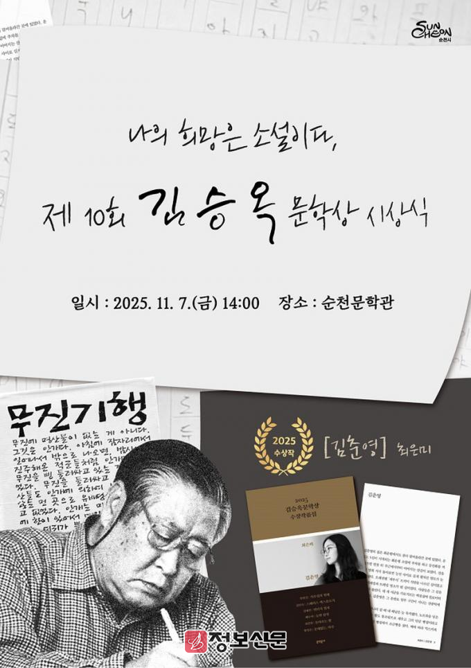시 관계자는 “제10회 김승옥문학상 시상식은 순천이 문학과 함께 성장해 온 시간을 보여주는 뜻깊은 순간이다”며, “앞으로도 순천은 문학이 시민의 일상 속에서 숨 쉬고, 새로운 창작이 이어지는 문화도시로 발전할 수 있도록 최선을 다하겠다”고 전했다.