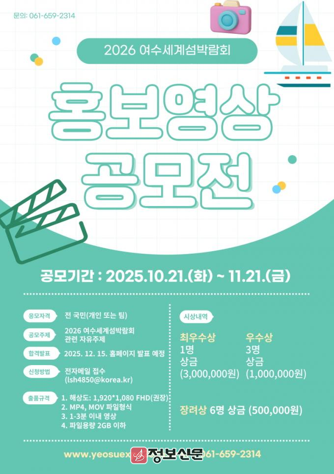 ![]() (재)2026여수세계섬박람회조직위원회, 섬박람회 홍보영상 공모 |