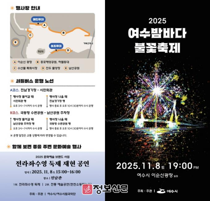 한편 올해 10주년을 맞는 ‘2025 여수밤바다 불꽃축제’는 11월 8일 이순신광장과 장군도 앞 해상 일원에서 진행된다.
