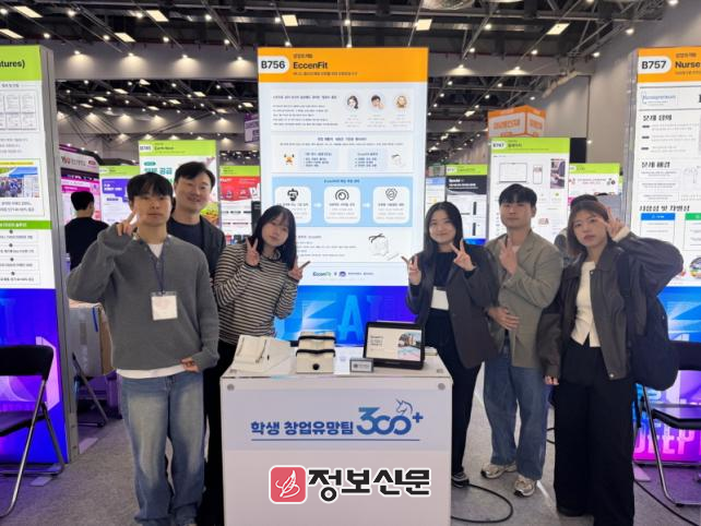 한편, 물리치료과 학생창업동아리 EccenFit팀은 교육부 주최 「2025 학생 창업유망팀 300+」에서 최종 10팀에 선정되고 EXPO 현장 관람객 투표에서 1위를 차지해 ‘인기상’을 수상했다. EccenFit팀은 테니스·골프 엘보 예방 및 완화를 위한 편심성 운동기구(Eccentric Exercise Device)를 개발하여 정밀 부하 조절 메커니즘과 실증 기반 데이터를 제시해 높은 평가를 받았다.