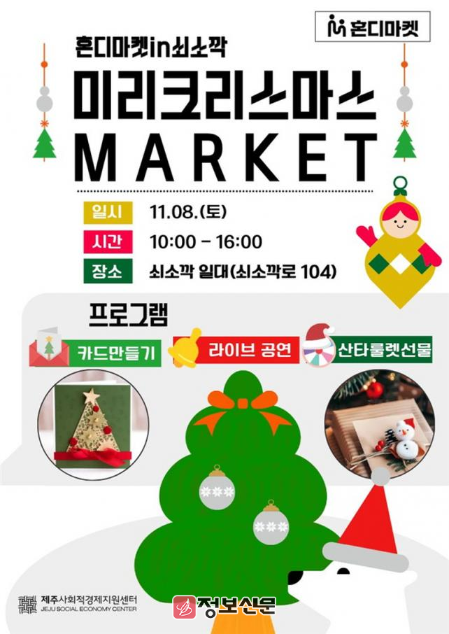 ‘혼디마켓in쇠소깍 미리크리스마스’는 관광객과 제주도민에게 사회적경제기업 제품의 홍보 및 판매 기회를 제공하며, 참여 기업의 매출 증대와 판로 확대, 그리고 자립 기반 강화에 기여하는 것을 목표로 한다. 착한 소비를 통해 지역 경제를 활성화하고 사회적 가치를 실현하는 의미 있는 자리가 될 예정이다.
