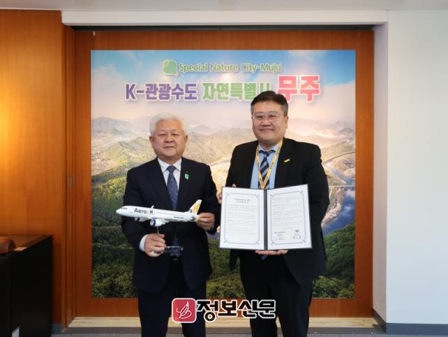 황인홍 무주군수는 “이번 협약이 자연특별시 무주의 관광 경쟁력을 한층 높이는 계기가 되고, 나아가 새로운 지역경제 활력 모델을 창출하는 기회가 될 것으로 기대한다”라며 “세계를 무대로 유엔이 인정한 세계 최우수 관광마을의 진면목을 보여줄 수 있도록 에어로케이항공과의 협력에 최선을 다할 것”이라고 밝혔다.