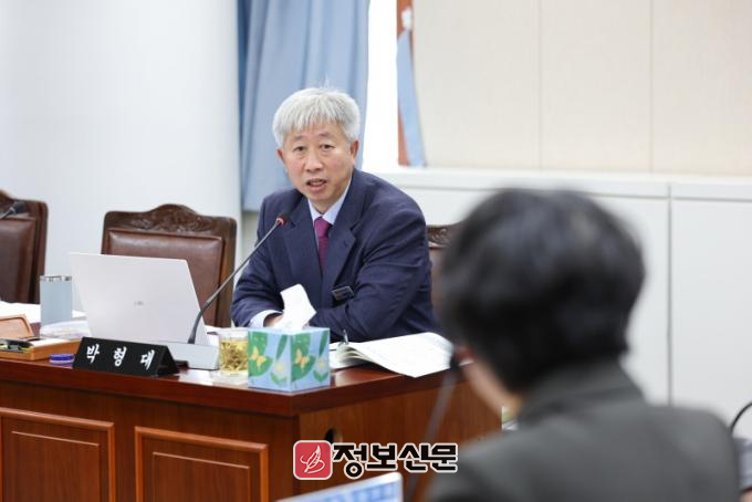 ![]() 박형대 의원(진보당·장흥1)이 7일 열린 전남보건환경연구원 행정사무감사에서 질의하고 있다. |