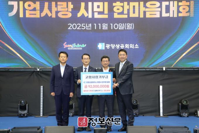 정인화 광양시장은 “기업인의 날 기념식이라는 뜻깊은 자리에서 두 상공회의소가 보여준 상호기부와 연대는 지역 간 교류와 우정의 상징이자, 고향사랑기부제의 모범 사례”라며 “이 같은 따뜻한 나눔이 지역사회의 희망이 되고, 지속 가능한 상생의 발판이 되고 있다”고 말했다.