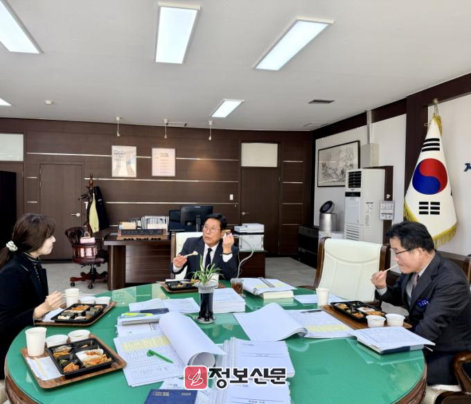 특히, 최근 군은 국도비 및 교부세 확보 대응을 위해 국회와 중앙부처를 바쁘게 오가며, 현장 대민행정과 겨울철 재난 대비 등에 여념이 없는 상황에서 군수가 실무진과 도시락을 함께하며 자유로운 토론 분위기 속에서 회의를 진행해 눈길을 끌었다.