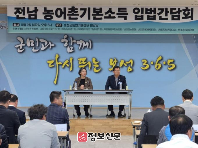 한편, 신 의원은 지난 9일에도 전남 보성에서 열린 ‘전남 농어촌기본소득 입법 간담회’에 참석, 현장의 목소리를 청취했다. 간담회에는 보성과 고흥 지역민 100여 명이 참석해 법 제정 전 시범사업의 한계와 문제점을 토로했다.