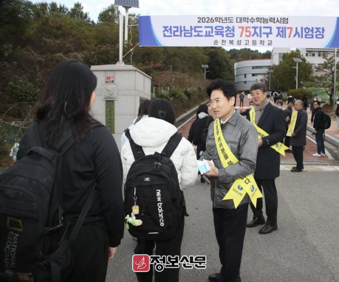 한편, 이날 목포·여수·순천·나주·광양·담양·해남 등 7개 시험지구, 총 46개 시험장에서는 1만 4,952명의 수험생이 2026학년도 대입 수능시험을 치른다.
