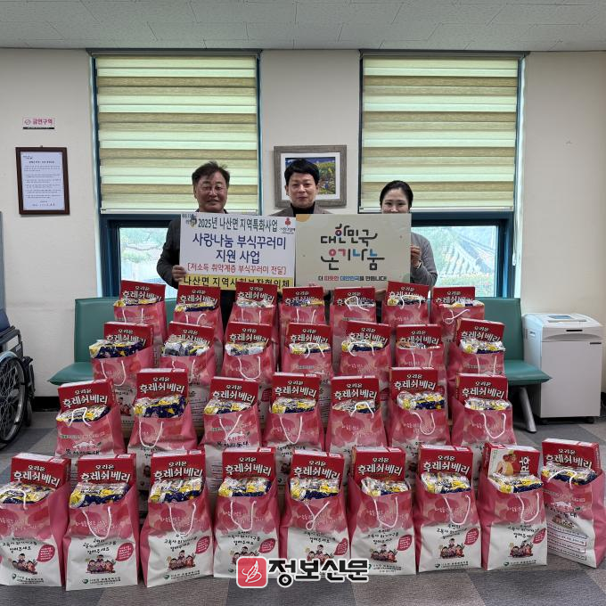 정석 나산면장은 “날씨가 추워질수록 이웃들의 조그만 배려와 관심이 외롭고 어려움을 겪는 이웃에 큰 도움이 된다”며 “작은 꾸러미지만 따뜻한 마음이 전해지길 바라며, 앞으로도 나산면만의 촘촘한 복지 체계를 강화해 나가겠다”고 말했다.