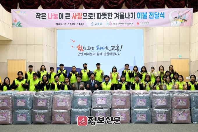 이번 행사는 고흥군 지역사회보장협의체 특화사업으로 추진됐으며, 한파로 어려움을 겪기 쉬운 취약계층 120가구에 실질적으로 필요한 이불을 지원해 겨울철 안전을 강화하고 복지사각지대를 해소하기 위한 취지로 마련됐다.