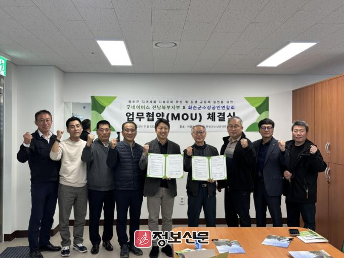 이번 협약식은 화순군어울림센터에서 진행되었으며, 굿네이버스 전남북부지부 강성규 지부장, 화순군소상공인연합회 김경수 회장 외 임원들이 참석한 가운데 이루어졌다.