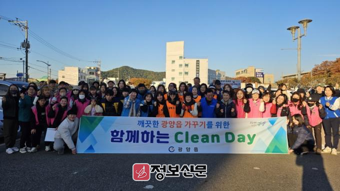‘클린데이’는 광양읍 사회·봉사단체와 읍사무소 직원이 함께 거리 대청소를 진행하는 행사로, 매월 셋째 주 토요일 정기적으로 운영되고 있다.