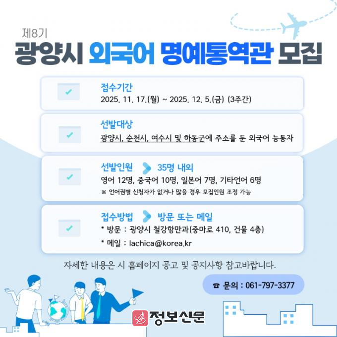 ![]() 광양시, 제8기 외국어 명예통역관 모집 |