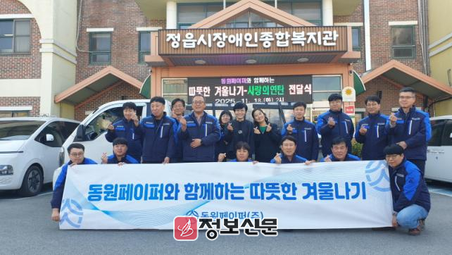 한편, 정읍시 영파동에 소재한 동원페이퍼㈜는 지난 2016년 김장김치 후원을 시작으로 지역사회 공헌 활동을 꾸준히 이어오고 있다. 특히 지난해에 이어 올해도 난방 취약 장애인 가정을 대상으로 사랑의 연탄 나눔 봉사를 실시하는 등 ‘지역과 함께 성장하는 기업’이라는 가치를 지속적으로 실천하고 있다.